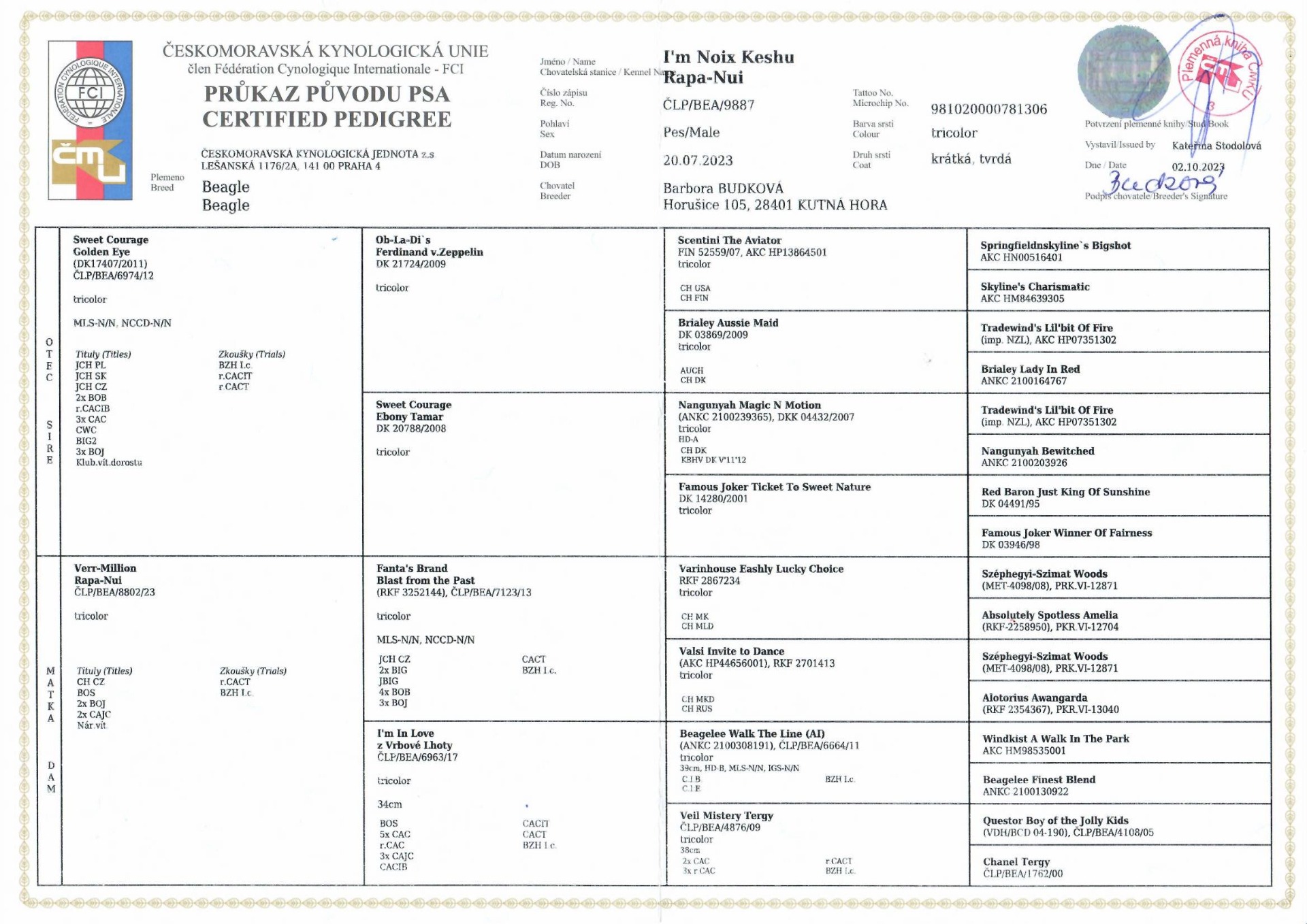 zkoušky: 2x BZH I.cena, 2x CACT, 2x klubový vítěz